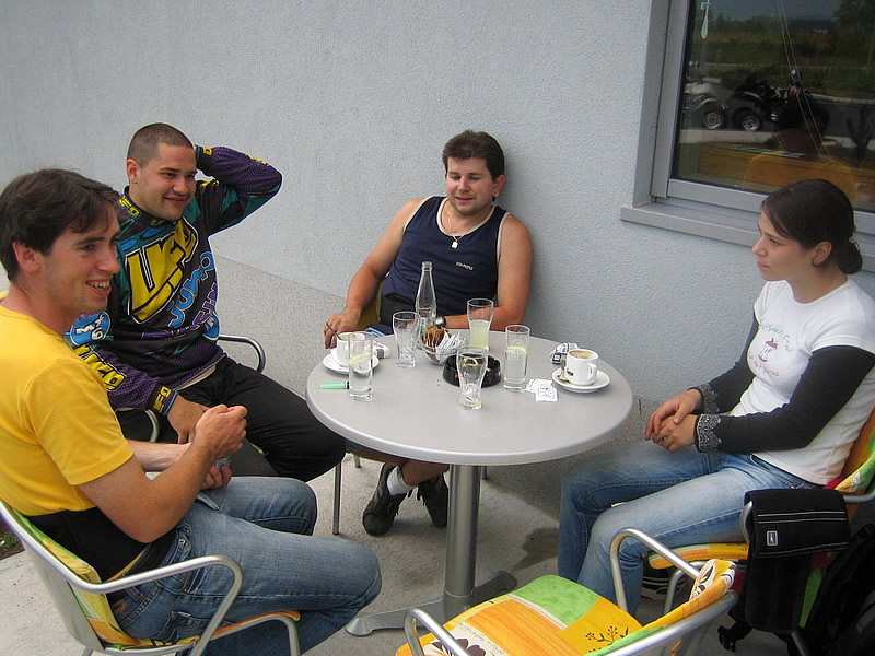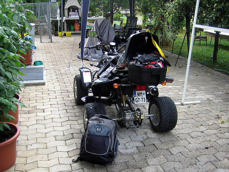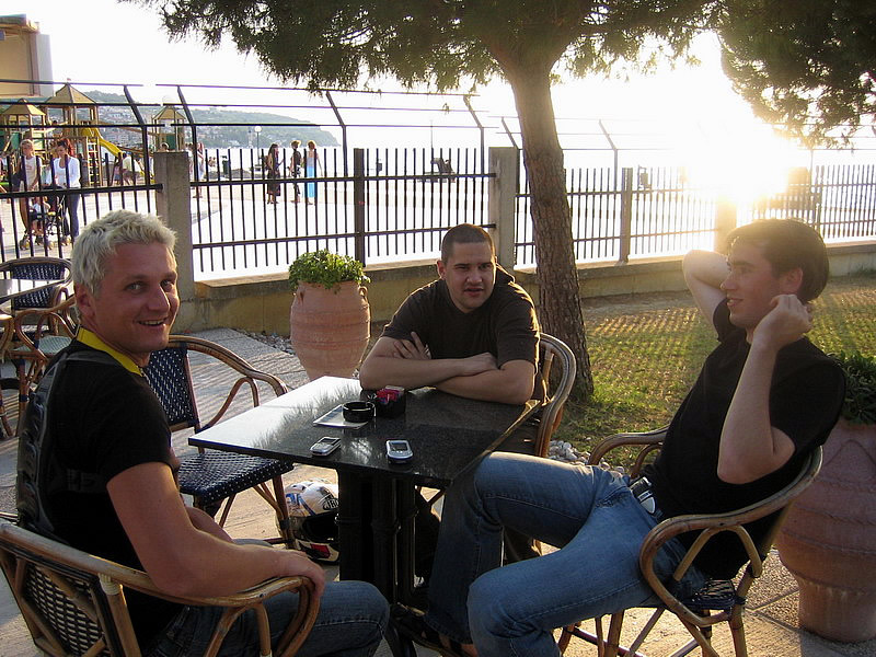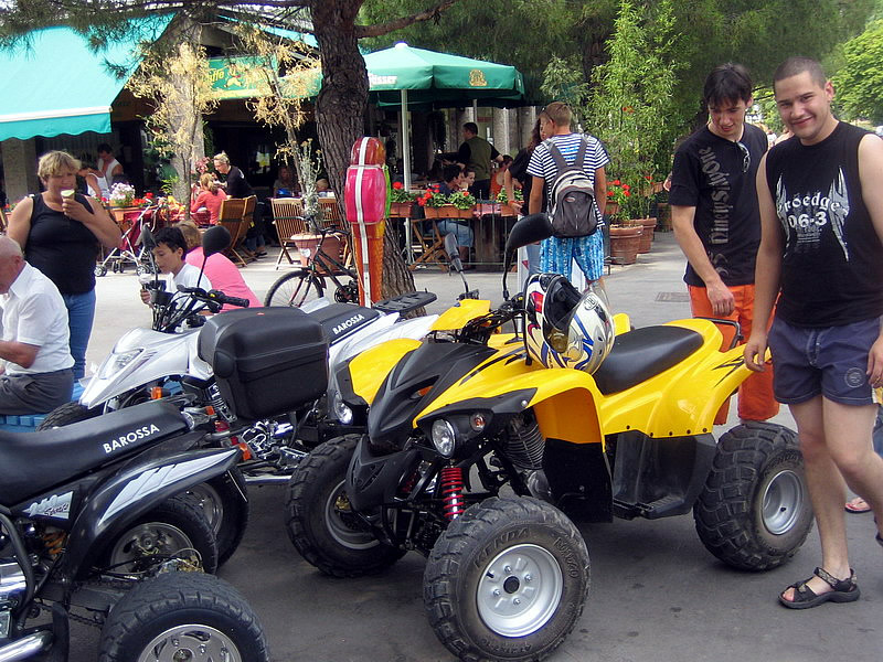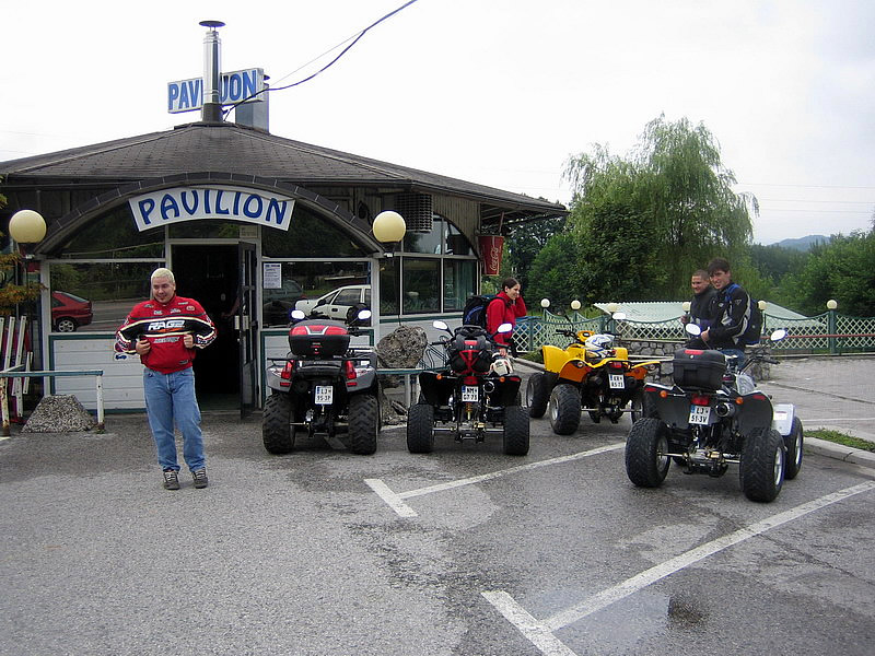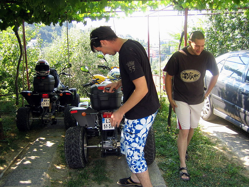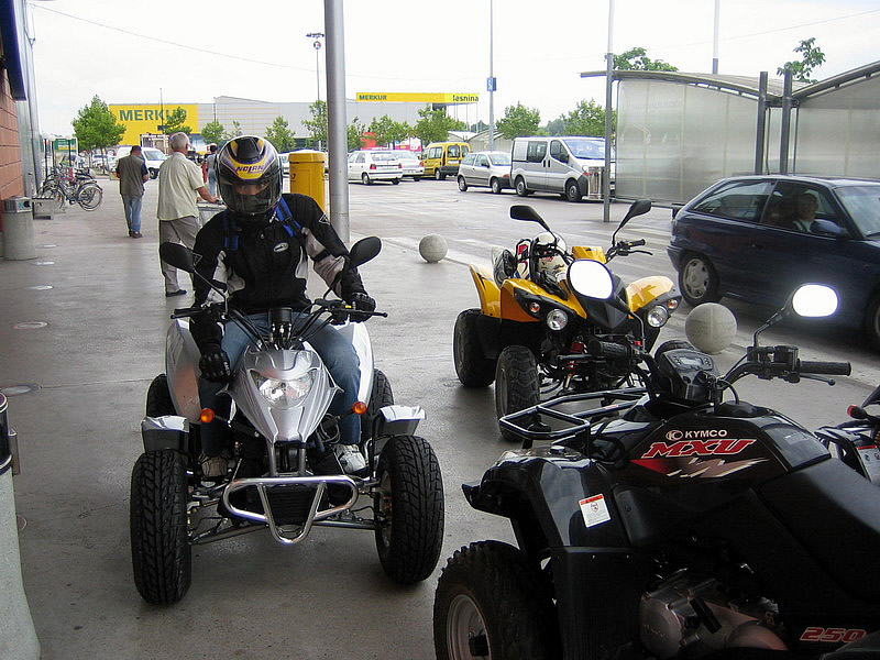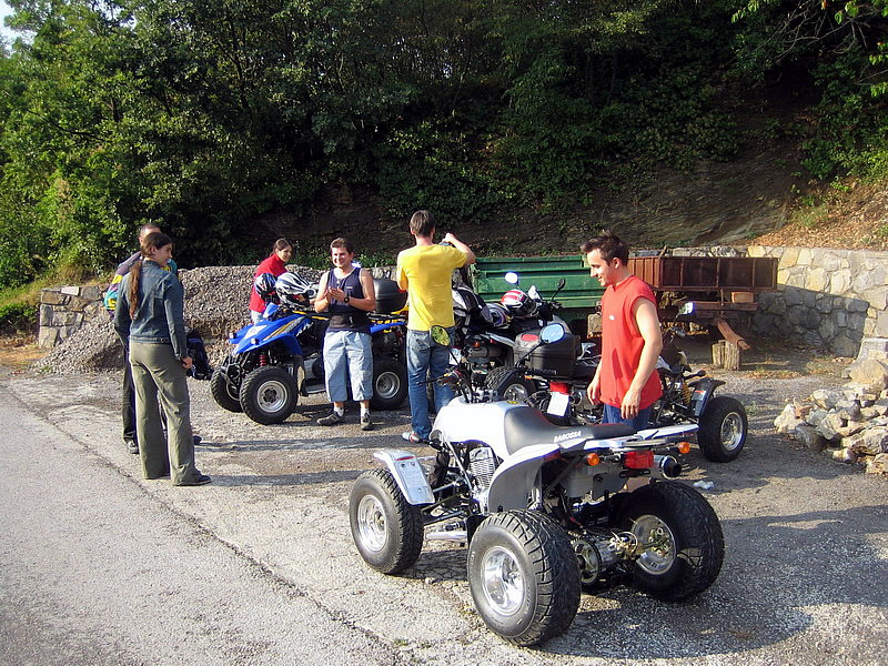 Ekipo smo sestavljali 4 osebe in 3 štirikolesniki in sicer: Jure in Mojca s svojim rumenim Adlyjem, Boštjan z Barosso SH Silver edition ter moja malenkost s črno Barosso SH. Vsi skupaj, vsak s svojega konca Slovenije smo štartali v soboto nekje okoli 8:30 in se zbrali pred Leclercom okoli 9:00, imeli smo kar nekaj postankov. Kot je že Jure povedal predvsem na črpalkah, hehe... Ura je bila 14:00 ko smo takoj po prevzem apartmaja stopili na portoroško plažo... Vožnja nikakor ni bila naporna... no ja, mogoče malo za Boštjanov desni palec, saj se je zapodil na svojo prvo tako dolgo vožnjo šele po njegovih prvih 200km, hehe... noč smo preživeli v Portoroških lokalih... v nedeljo pa se nam je iz Vipave pridružil še Borut (Gospod Kymco :-)) s potujočo delavnico :-) in njegovo boljšo polovico... Popoldne pa smo jo vsi skupaj ucvrli proti domu. Naredili smo krajši krog preko Vipave, kjer smo se ustavili še pri Primožu, ki prideluje najboljša primorska vina... seveda se ga nismo napili ker je bila pred nami še kar dolga pot do doma, hehe... med potjo nas je ujelo nekaj dežnih kaplic, vndar nič hujšega... Okoli 22:00 pa smo srečno prispeli pred Paviljon na Brezovici in jo ucvrli proti domu vsak na svoj konec...