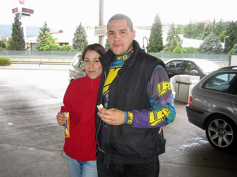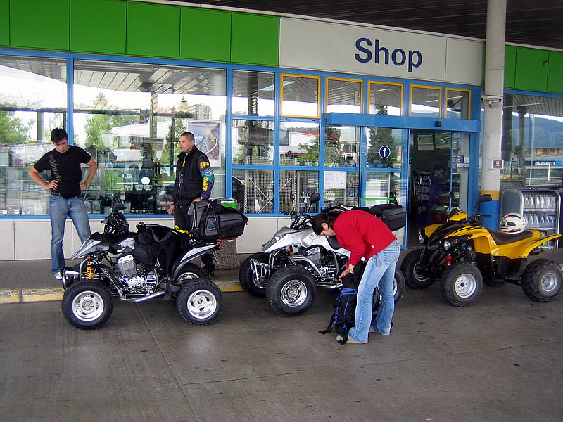 Postanek v Kopru na črpalki... Ruzak tokrat ne nosi Mojce...