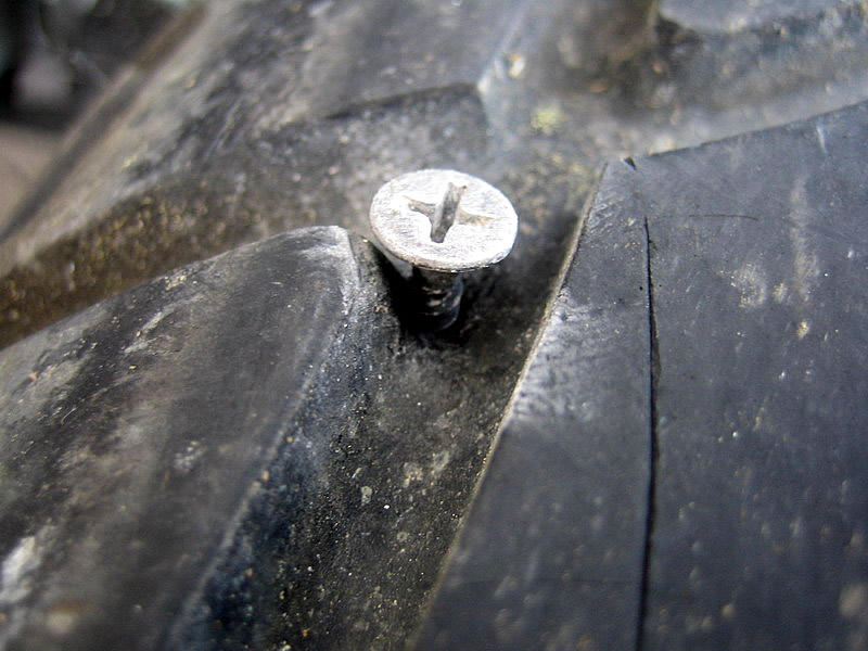 Boštjan si zabija žebelj v gumo...